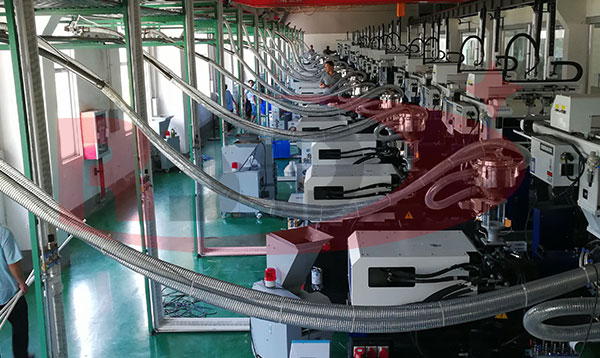 1、塑膠原料存儲、除濕幹燥、計量混合到輸送到各個成型機使用;